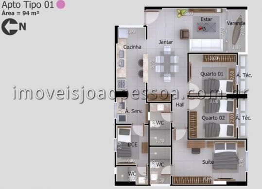 - Área privativa: 94.00 m²