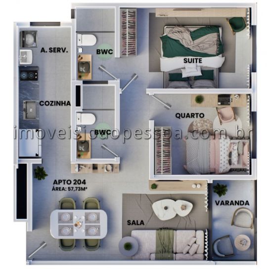 - Quartos: 2 sendo 1 suíte(s)