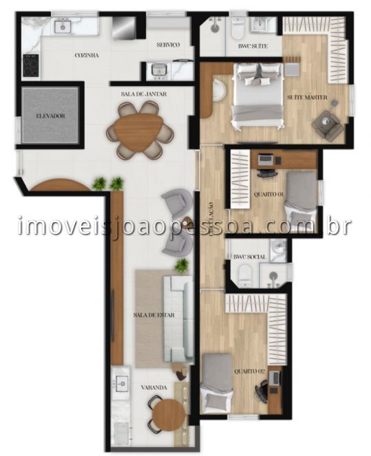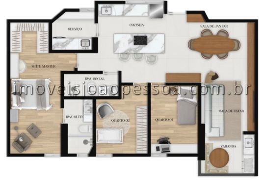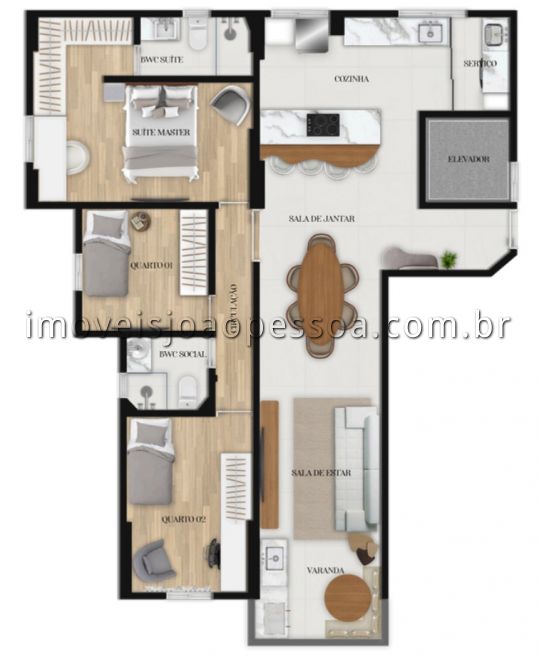 - Quartos: 3 sendo 1 suíte(s)