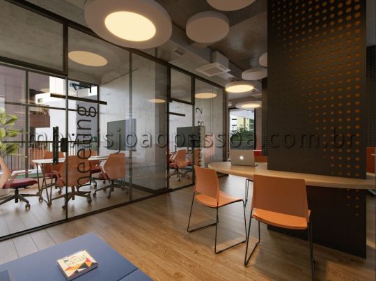 Coworking com 3 Salas Individuais: Ambientes profissionais equipados para home office ou meetings, com design moderno e vista inspiradora.